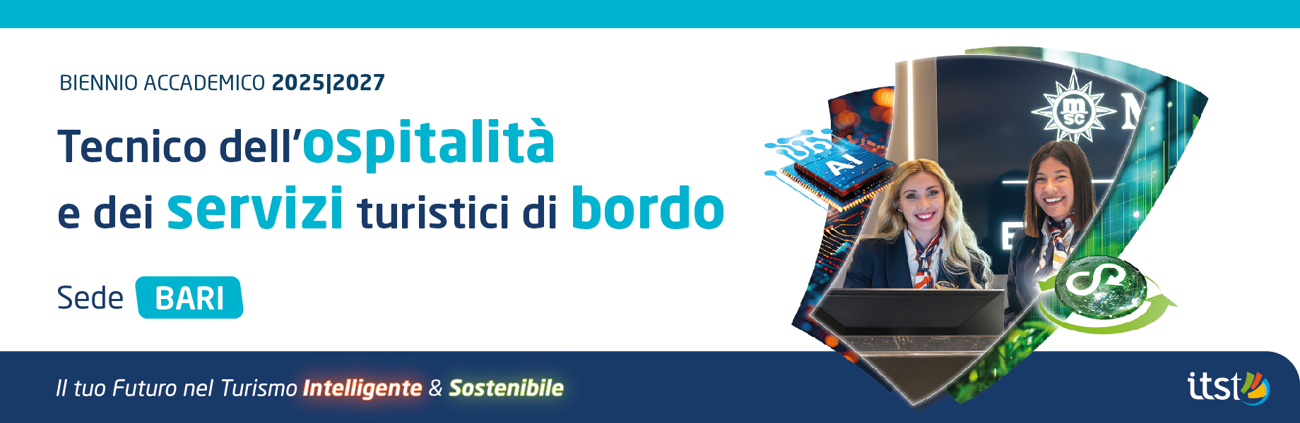 Il turismo si conferma un comparto trainante per l’economia italiana, soprattutto nel segmento internazionale, che riesce a compensare la lieve flessione della domanda interna. In questo scenario, la Blue Economy, e in particolare il settore della crocieristica, offre crescenti opportunità occupazionali per profili specializzati come il Tecnico dell’ospitalità e dei servizi turistici di bordo. La Puglia continua a rafforzare il proprio ruolo come hub strategico per l’industria turistica del Mediterraneo, con 30 porti turistici, 7 scali crocieristici attivi, 85 comuni coinvolti dal turismo via mare e un’offerta integrata tra mare, cultura e accoglienza.